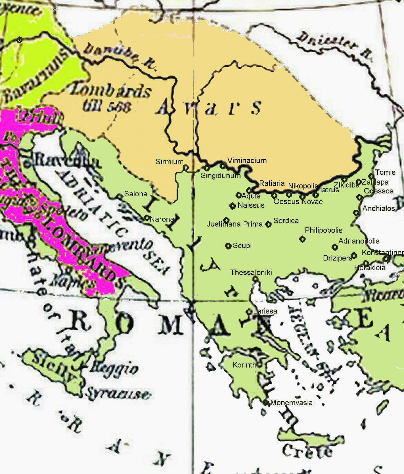 They were enabled to enter by the Byzantine Empire because that empire was always willing to grant lands to potential mercenaries on their borders. Furthermore, the Avars were seeking rich pastural lands, which the Puszta provided. The map shows them at their largest extent. By Charlemagne’s time they had been pushed back so that the Danube had become their border, but their intrigues with Bavaria eventually led to their own downfall.The name of these people derives from the concept of “superiority,” “elevation,” “height.” Thus they thought of themselves as rulers. History, indeed life itself, teaches that such aspirations, taken too literally, are of brief duration.