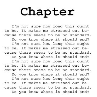 I'm just making those numbers up out of thin air, of course. There is no standard when it comes to chapter length...maybe that's why authors are asking about it all the time. Every writer does it differently, and maybe that's another reason it's so confusing. But when it comes to chapters, there's really just one answer: there are no rules.