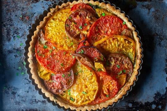 “Caramelized slices of pear hid beneath the custard, and the top was sprinkled with shards of toasted almonds.”