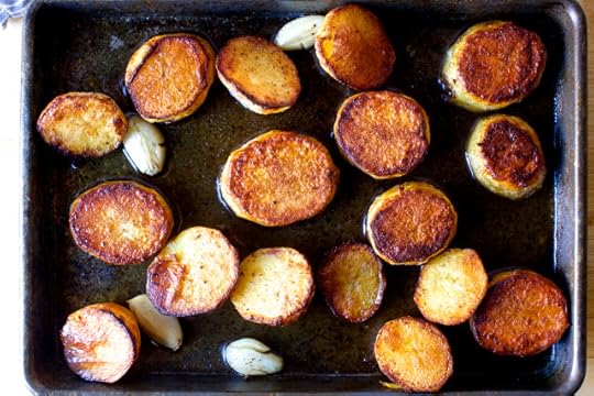 A few weeks ago — although, you can imagine, it feels like it’s been much, much longer* — I learned bout something called melting potatoes and had to make them immediately. This is my favorite way to fall into something new: swiftly and static-free, even better when it has outsized pleasing results. I find the energy that comes from it kind of infectious. Why limit this fun to potatoes? Why don’t I do something random and new and unpredictable every single day? I should start right away. Or after I make these potatoes again because the only bad thing about them was that we had plans that night and I left them with the kids and babysitter. I did sneak one off the pan. It was hot. I dropped it. I definitely definitely did not eat it anyway. I am way too classy for that. Totally.