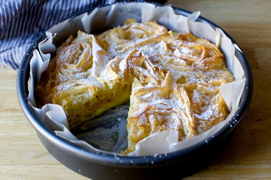 I first learned about ruffled milk pie from Vefa’s Kictchen, a substantial Greek cooking volume that first came out in 2009. A type of galatopita (“pie made with milk,” aka a baked custard pie), this is more striking in appearance than most due to wound and rumbled sheets of pastry, which also providing texture and crunch. It’s so pretty and it sounded so simple — there are 7 ingredients and I bet we keep 6 of them around — it was absolutely, unequivocally something I could get into and want to tell you about immediately save one thing: it uses filo. And would rather do almost anything than work with filo. And I have! I’ve had two kids. I’ve written two cookbooks. I’ve moved apartments. I have planted gardens and taken up running and gone on vacations and okay, maybe I didn’t do all of these things just to avoid using filo in one single recipe, but I can tell you that when the top two items on my to-do list sifted out last week as 1. Purge too-small clothes from kids’ overstuffed dressers, and 2. Make ruffled milk pie, I at last found something I hated more than more than I dreaded working with filo. I am pleased to tell you that my kids clothes are still an unmitigated disaster but this pie is fantastic.