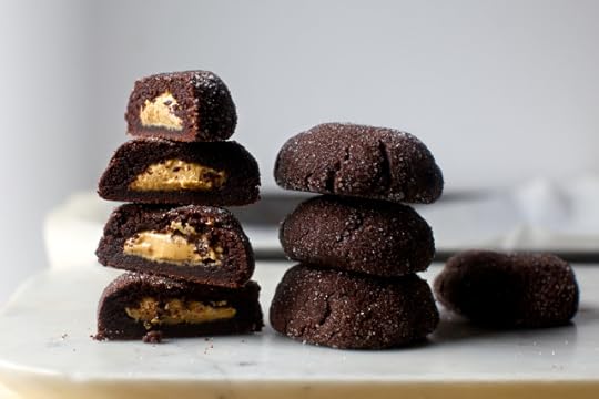 The internet, or at least as far as I’ve seen, has three favorite peanut butter cookies. The first is a thing where you take a peanut butter cookie dough or prepared chocolate chip cookie dough, press it into a mini-muffin tin, press a miniature peanut butter cup inside of it and bake them together. Nobody has ever made these for me and I’m kind of mad about it. The second is this 4-ingredient, one bowl, hand-whisked salted peanut butter cookie, curiously absent in flour, butter and leaveners, that’s been around forever until the clever cooks at Ovenly figured out that using brown sugar instead of white, them into larger half-domes, and covering them with sea salt raised them to the unforgettable. The third is a soft chocolate cookie wrapped around a peanut butter filling and bakes into peanut butter cup cookies. No wait, pillows.