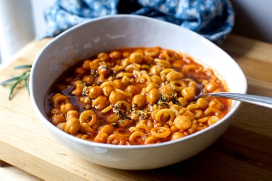 Pasta e ceci (pasta and chickpeas) is one of Rome’s most iconic dishes, the only dish so essential that it shows up on both Tuesdays and Fridays on the informal meal calendar.* And while there are no two matching ways to make it (a fine excuse to spend as many weeks in Rome as it takes to try them all, if you ask me), the rough guiding recipe principles are fairly consistent: a sautéed base of garlic, sometimes onion, celery and carrot too, and seasonings to which chickpeas, water or chickpea cooking broth, and pasta are added. Some are a more brothy like soup, some blend some chickpeas for a thicker base, some more herby with rosemary or sage, some are light and others are heavy on tomatoes. And then then came Victoria Granof’s version that took the internet by storm over the last couple years as word of it trickled out from her Chickpeas cookbook (which goes so far beyond hummus in ways that only a Le Cordon Bleu-trained chef and famous food stylist would think of) in the lovely Short Stack single ingredient cookbook series.