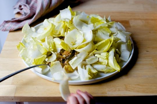 I understand that most people, normal people, can outline phases of their lives through jobs or photo albums or even where they lived; I apparently can do it through endive salads I was obsessed with at the time. In 2005, there was one from Nigella Lawson in the New York Times with toasted hazelnuts, grain mustard, lime and orange and sesame oil. My husband and I were a relatively new thing at the time and he wasn’t terribly into endive but he ate it politely for weeks and weeks, and eventually came around, or caved. Same thing, right?