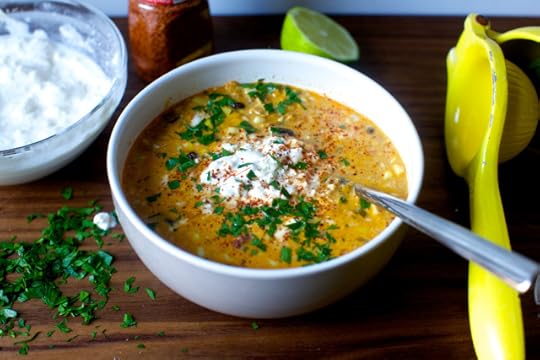 I evicted a longtime resident of my To Cook list this week with this corn chowder. I have no argument with traditional corn chowder — it has cream, bacon, and potatoes and thus would be impossible not to love as soup or salad — but I adore to the point of boring everyone around me with my gushing, Mexican-style corn either elote-style (on the the cob rolled in butter, mayo, lime juice and coated with salty crumbled cotija cheese and chile powder or a chile-lime seasoning blend) or esquites-style (all of the above, but in a cup). This corn chowder attempts to celebrate the best of both.