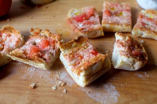 In the U.S., we generally think of hummus (which simply means “chickpea” in Arabic) as a cold snack, a dip you buy in the fridge case to help distract you from, say, cool ranch potato chip dip or something. But throughout the Middle East, there are hummusiots/hummsias, places that serve hummus warm and freshly made, often a little softer than what we get here, usually heaped with other things. Yes, as a meal; a heavenly one. Toppings might include additional tahini or chickpeas, cooked fava beans (ful), sautéed mushrooms, roasted beets, hard-boiled eggs, falafel, spicy ground beef, chopped tomato-onion-cucumber salads, pickles, and/or green olives plus always a stack of freshly baked puffy pitas. In some areas, hummus is a breakfast food, accompanied with labneh and mint. And it is from daydreaming about all of this — with a reminder from this oh-so-tempting Ina Garten photo from last week — that I realized that the easiest way to turn my tomato-cucumber salad obsession in to a meal was to serve it hummusiot-style.