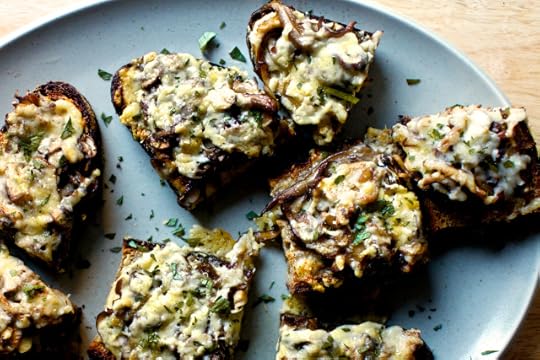 My solution, as ever, is to serve them open-faced, piled high and with ideal proportions. If we were in Paris — and oh, I wish I were — we’d call them tartines. My brain is clearly already there because I modeled this “toast” on a croque monsieur (which I just learned, to my delight, translates as “gentleman crunch”), those cheese-coated, pan-fried ham and cheese sandwiches with frico for miles. I’m partial to the forestier-style croque at Buvette, where mushrooms take the place of ham and there’s a thick, Dijon-rich bechamel underneath (where a cold sandwich might enlist mayo or aioli). My open-faced version uses a whole-grain sourdough bread as a foundation and so much cheese on top that it spills down onto the baking sheet and lifts off in crispy flakes. I honestly don’t know why we’d ever want to eat anything else.