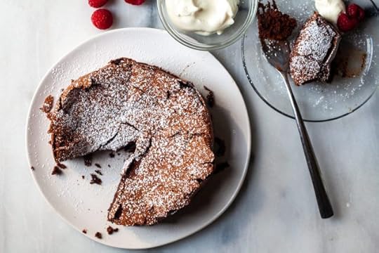 This is the lightweight, semi-collapsed disc of cognac-kissed dark chocolate I nominate to be your backpocket, arsenal-worthy decadent cake for small but fancy times. It’s been in my rotation for well over a decade — I’ve shared riffs on it in these cupcakes and in the tiny but intense chocolate cake in this book — because while I could never get into those dense, nap-inducing bittersweet chocolate cakes of the early aughts, a few adjustments led me to this dream. Here’s what sets it apart: