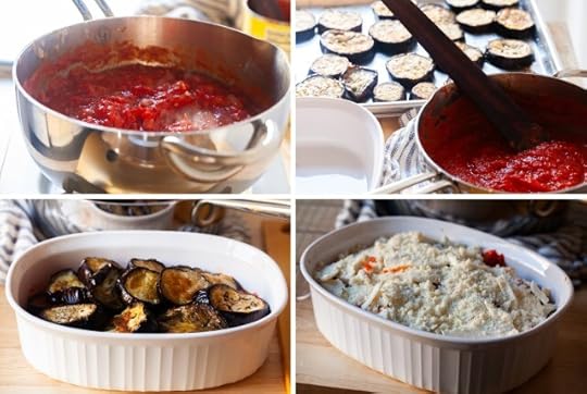 So what changed? Going to Italy this summer! We ordered eggplant parmesan (parmigiana di melanzane) almost every time we saw it on the menu and do you know what would come out? A dish that looked like this — no breading, no crumbs, no ricotta. It made more sense when I read about the history of the dish from Emiko Davies which I’ll simply link to rather than poorly summarize (it’s fascinating!) but it also gave me the nudge to finally spring the recipe from my kitchen to yours.