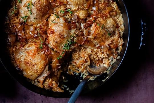 Over the last few years, and particularly during those long months of 2020, we got really into variations on “chicken rice” — chicken and rice cooked together in an aromatic broth that together is the most cozy, comforting thing. The rice is crazy flavorful, drinking up any seasonings and/or vegetables you add to the pan. The chicken is tender and juicy. The dish keeps well even if I’m making it many hours earlier than dinner and the leftovers are phenomenal. It’s relatively inexpensive and I’ve almost always got at least the rice and various pantry items around to make it work. It should run for president.
