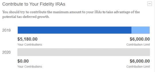 Of the $6,000 maximum, I’m $5,180 into the 2019 contribution limit.