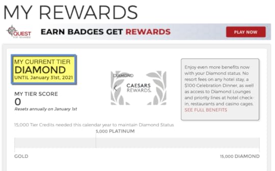 This year, Caesars Total Rewards Diamond elite status is back, which gets you: