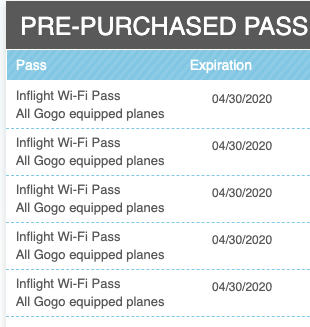 10 Gogo passes to use in-flight per calendar year (10 in 2019 and 10 in 2020 – worth $320 total)