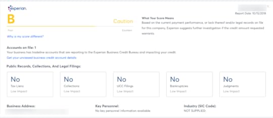 After I entered the information, I found my business with Experian. And was given a “B” grade – probably because I only have one type of credit (small business credit cards).