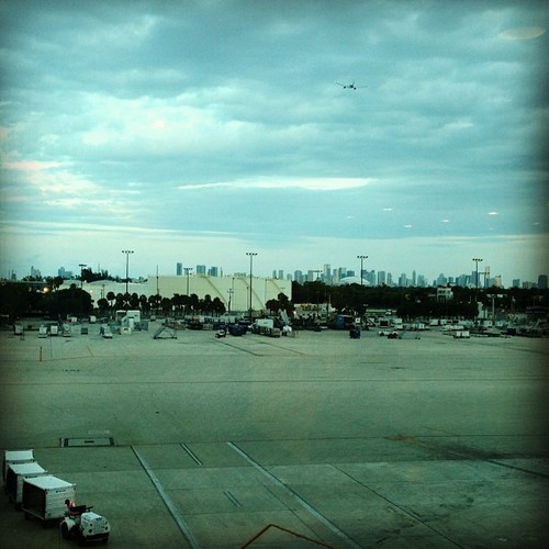 Airport activity near dusk at #MIA. View of downtown #Miami in background. #travel (at MIA Terminal J)