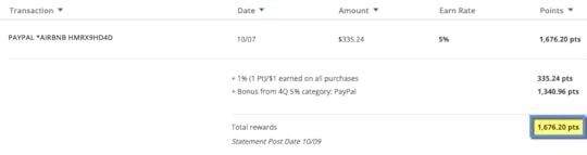 I used Hyatt points and a free night credit from my Chase World of Hyatt card for the two nights in Austin, so they were completely free. And paid for the Airbnb with my Chase Freedom Flex via PayPal, which is a 5X Chase Ultimate Rewards points category in Q4 2020.