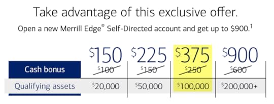 Through April 15, 2021, there’s a bonus offer for opening a new Merrill Edge account. I could roll over that IRA and get a $375 bonus while also qualifying for the Platinum Honors tier in the Preferred Rewards program.
