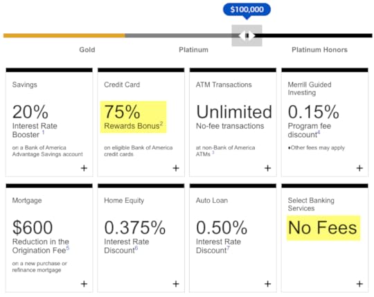 That would get me a free checking account and a 75% bonus on the rewards from Bank of America credit cards. Which would also mean I could earn a couple more credit card bonuses in the process and add new cards to my rotation.
