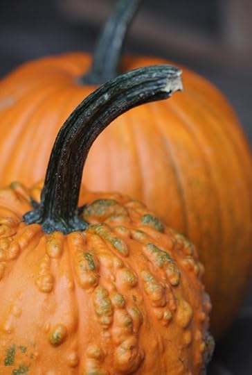 Pumpkins: Bumpy pumpkin and a waiting Jack-o-Lantern