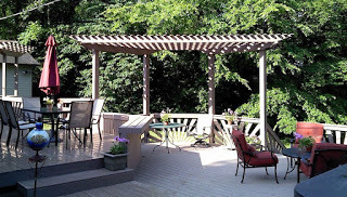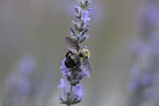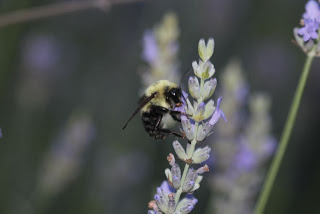 You know I would never get this close to bees if I weren't a sucker for a good photo op. The lavender in my garden is blooming like crazy. The herbs--except for the basil--adore this hot, dry weather. Seems the bees like it, too. Better that they pollinate the lavender than drill holes in my porch. If anyone has ideas about how to discourage carpenter bees, let me know.