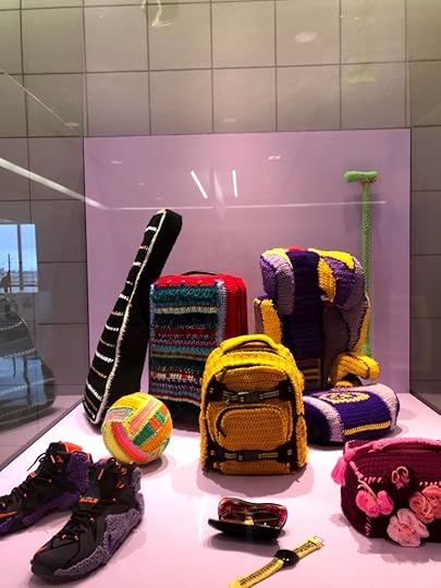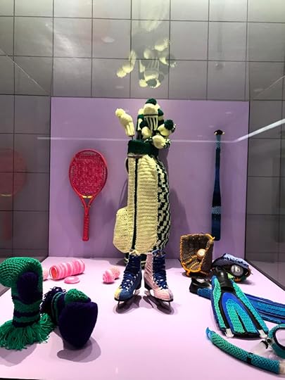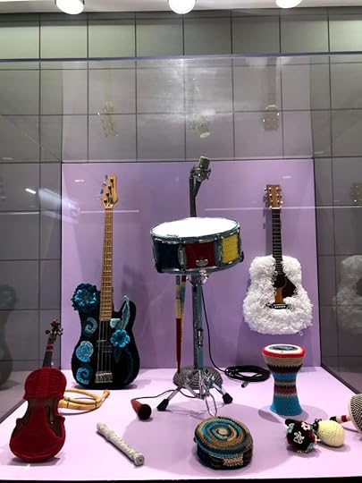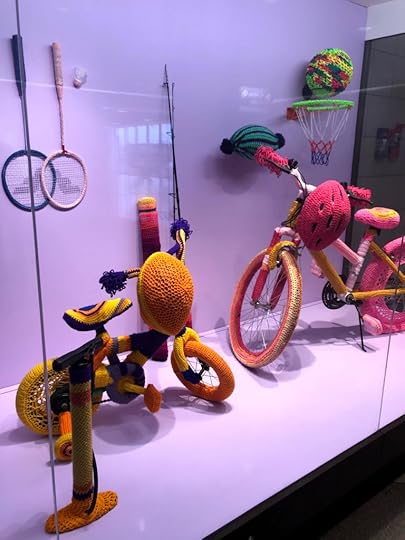 On my way home from Bouchercon 2017 in Toronto I had a long layover in the Philadelphia International Airport. I came across this delightful exhibit of yarnbombing. It’s retro and modern and charming, all at the same time. The artist calls herself Marbufs.