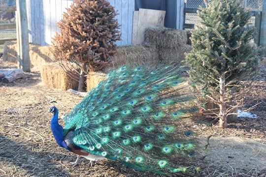Here’s a picture of a peacock with some recycled Christmas trees. No jingle bells here…yet.