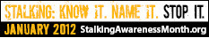 To heighten awareness of how widespread this crime is, and to educate people about available resources for victims, January 2012 has been declared National Stalking Awareness Month.