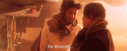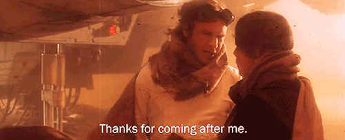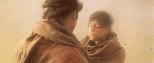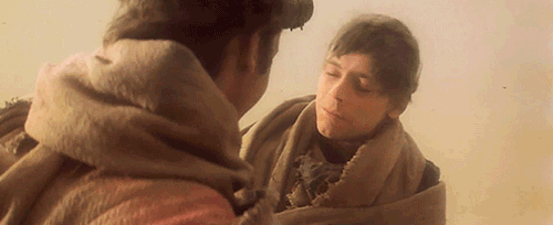 And as they went away with Luke letting Han’s hand trail out of his, I thought, “…as though millions of Han/Luke shipper voices suddenly cried out and were silenced.”