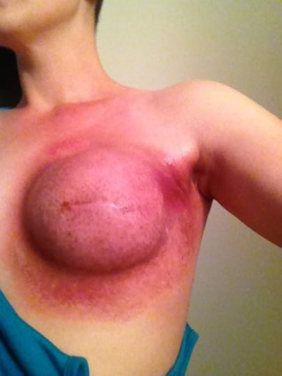 This was during my 35 day radiation treatment back in 2013. Breast cancer isn’t sexy. It’s not about saving the boobies. It’s not about no bra day, which is really just an excuse for women to post sexy pics of their nipples pressing through their clothes. It’s scars, nausea, pain, bald heads, burnt skin, and broken hearts.