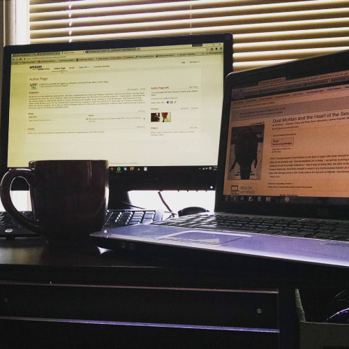 New book out. Also applying for jobs. Two computers plus mug of coffee is necessary to make all the things happen!