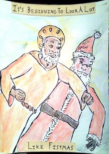 2) depicts classic Saint “Bishop Puncher”, Nicholas bashing modern-day Santa “Coke Spokesman” Claus.