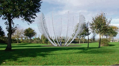 The sculpture, consisting of nine giant, stainless steel eagle feathers, is currently being completed by Cork sculptor Alex Pentek. Speaking to the Irish Examiner, Pentek says, “I wanted to show the courage, fragility and humanity that they displayed in my work.”