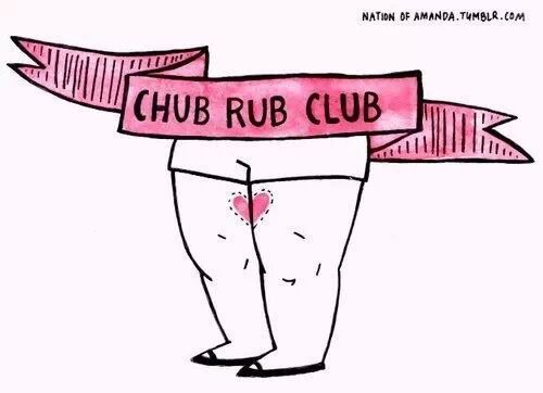 Fun fact: I have big thighs and they like to rub against each other and boy does that sometimes ache. Even though I’m not “chubby” I would proudly say, “Yeah, chub rub club!” Because fuck, sometimes people have big thighs, regardless of waist size.