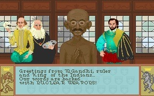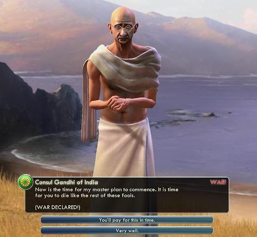 Gandhi has been historically the most aggressive character in Civilization due to an original bug in the first game that caused him to go all-out once he reaches democracy. They just kept the thing going ever since.