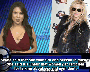 and Ke$ha is all for loving yourself and equality but she continues to receive harassment from mainstream media. Enough harassment to the point that she developed an eating disorder because of it. She is an example of how horrible and sexist the music industry is.