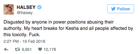 After a New York City judge declared Friday that pop star Kesha could not escape her recording contract with longtime producer Dr. Luke, many artists took to Twitter to stand by her.