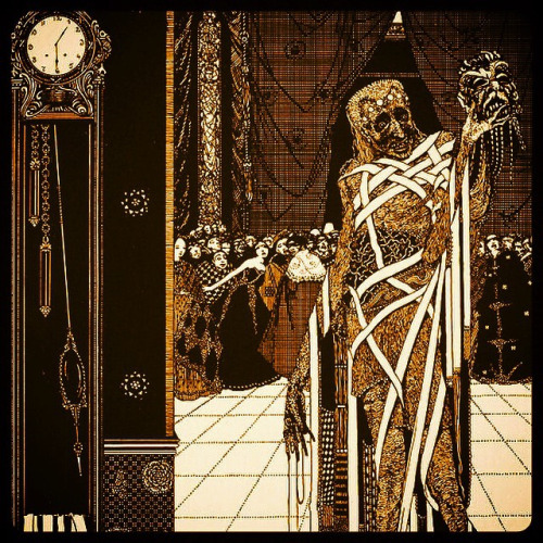 “But now there were twelve strokes to be sounded by the bell of the clock; and thus it happened, perhaps, that more of thought crept, with more of time, into the meditations of the thoughtful among those who revelled. And thus, too, it happened, perhaps, that before the last echoes of the last chime had utterly sunk into silence, there were many individuals in the crowd who had found leisure to become aware of the presence of a masked figure which had arrested the attention of no single individual before. And the rumor of this new presence having spread itself whisperingly around, there arose at length from the whole company a buzz, or murmur, expressive of disapprobation and surprise –then, finally, of terror, of horror, and of disgust.”