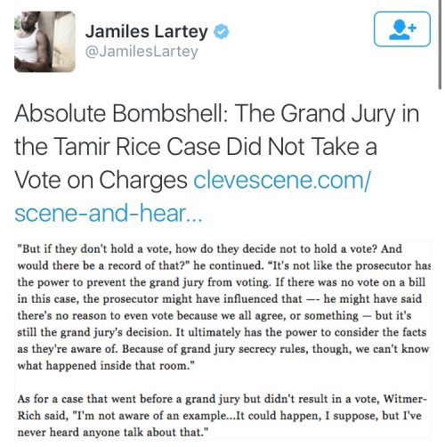 Grand Jury Never Voted on Whether Or Not To Indict Police Officers Involved in Fatal Shooting Of Tamir RiceThe grand jury that declined to indict the two Cleveland police officers involved in the killing of 12-year-old Tamir Rice never took a vote on the decision, officials revealed. A document released Wednesday by the prosecutor’s office showed the formal record of the jury’s decision.