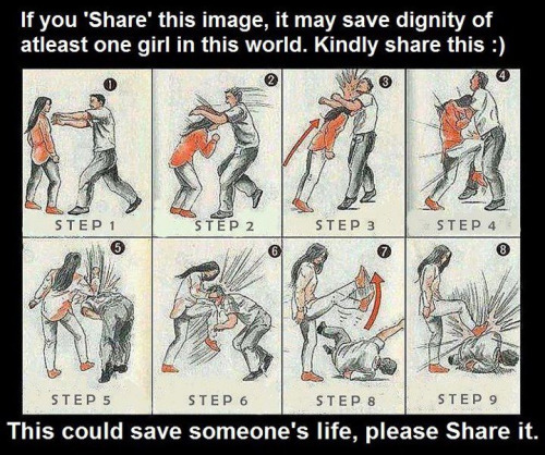 Reblogging for the steps in the image and the explanation in the comments. I don’t so much like the explanation on the image proper, but I appreciate the thought behind it (here, have a self-defense thing, it could save you) and so I’m passing it on.