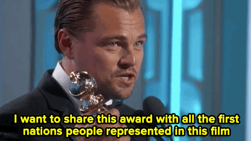 Leonardo DiCaprio went home with the gold Sunday night for best actor in a drama film. As he wrapped his speech, DiCaprio took a moment to honor the Native Americans depicted in The Revenant. Twitter loved his speech just as much as the roaring audience, to say the least.