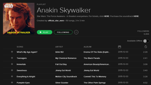 this is the official spotify star wars playlist for anakin i’m crying