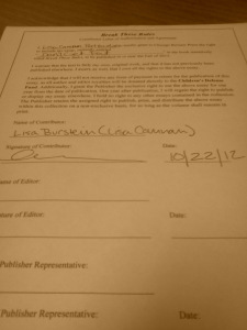 Well, I signed the contract today so I can officially say I will be included with an essay titled “Don’t Get Fat” chronicling my struggle with and recovery from an eating disorder.