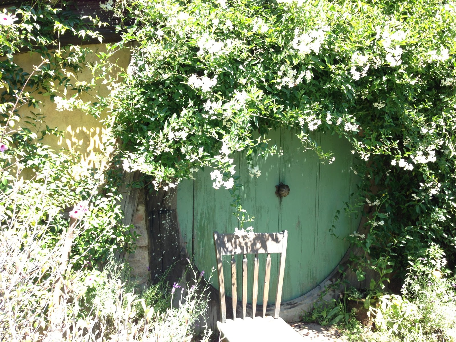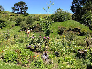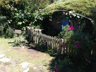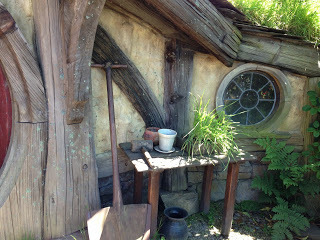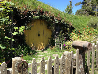 Sam and Rosie's home. Yellow door, surrounding wildflowers, and a horseshoe fence latch. This was my favorite hobbit part of Hobbiton. I kept replaying the very end of Return of The King in my head. Here's a clip from Youtube of the scene. If you go to 2:30 you'll see Sam and Rosie enter the home carrying their two adorable children.