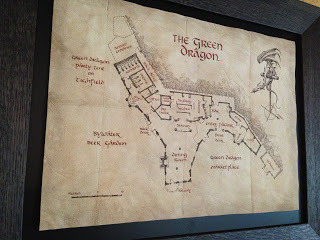 Past The Shire and over the bridge you'll find The Green Dragon Inn. In The Fellowship of The Ring there's a scene where The Green Dragon burns in Frodo's dream. The building was actually set on fire and destroyed. When they came back to film The Hobbit, the inn was rebuilt and is now a functioning pub.