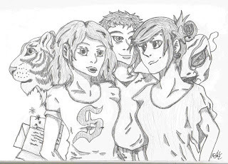 I got this picture in a message from Anastasia, who drew this sketch of the main characters after reading The Shapeshifter's Secret. This is so amazing, and it reminded me once again why I write. I love Julia's shirt, the werecat, the magical tablet letter, and all the details put into each character. Thank you Anastasia for sharing this incredible picture, you are so talented!