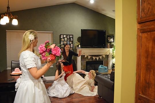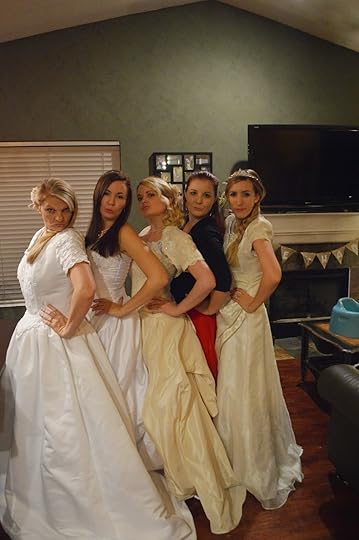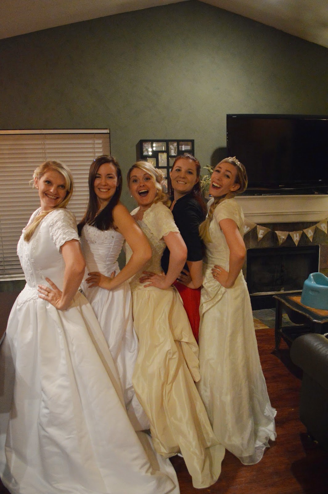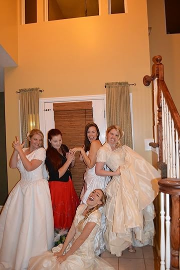 Can I tell you how much I love my writer's group? Sometimes we dress up when we meet together and this month's theme was the wedding edition. Yes, you heard right. We dressed in up wedding gowns, ate wedding cake, and took wedding pictures. You can see more proof below.