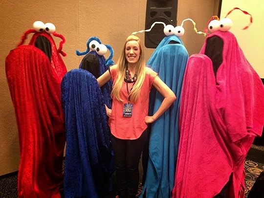 I'm sorry if I missed you! Everything right now is a balancing act, but I had a great time on panels talking about writing, Disney sidekicks, Disney villains, Harry Potter, and The Muppets. Yes, The Muppets--that was such a zany, fun, and energetic panel. I could not stop smiling. I think my favorite part was when these colorful aliens above came shuffling down the aisle mid-panel. Afterwards we took a picture together and I'm guessing my arm was pretty tasty!