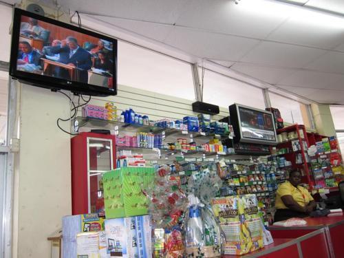 Budget day in Kingston, Jamaica, May 24, 2012. Finance Minister Dr Peter Phillips reads the budget in a broadcast carried live, as seen at a supermarket in downtown Kingston. His budget included a series of tax increases aimed at earning an additional (JCA) $19.3 billion in revenues. Even tourists will be expected to pay a new room tax, ranging between US2$ and US$12 per night. As with most Caricom countries the economic growth outlook remains sluggish at about 1 per cent per annum. READ more here and here.