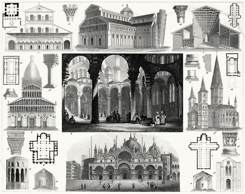 From Bilder-Atlas zum Conversations-Lexikon : Geschichte der Baukunst (plates to the history of achitecture section of the Conversations-Lexikon, AKA Brockhaus Enzyklopädie), Published by Brockhaus, Leipzig, 1888.