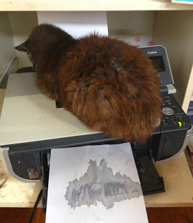 Who doesn’t have an occasional disruption in the electromagnetic field of their home? Yes, our electronic devices act strange. But I’m pretty sure it has to do more with the fact that tech gadgets in my home are regularly dropped in the toilet and are fed a steady diet of spilled caffeinated beverages. My printer often springs to life with unprovoked grunting noises. Don’t be alarmed. I attribute the unexplained behavior to its primary use as a very functional, yet expensive, cat bed. Just be warned, nothing that enters this house leaves without first undergoing some sort of metaphysical change. By the way, as seen in the photo, one of our cats peed on the printer while I was writing this. Now that is spooky.